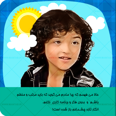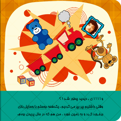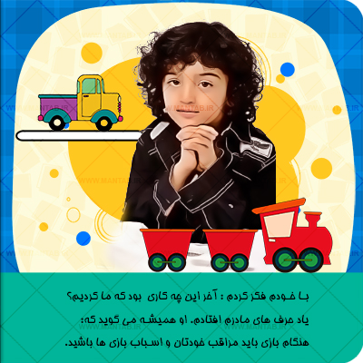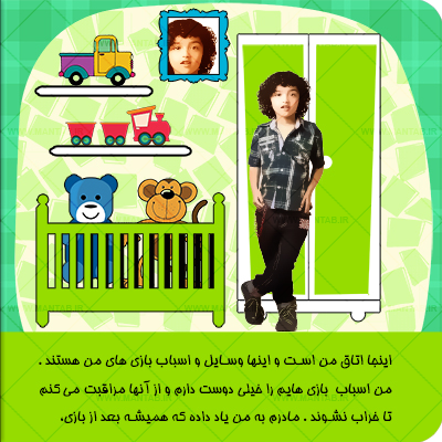 شما می توانید با توجه به حالات مورد نیاز برای این داستان، از فرزندتان عکس گرفته و برای ما ارسال کنید، تا داستان این من تاب، با نام و عکس های ارسالی ، بصورت کاملا اختصاصی برای فرزند دلبند شما چاپ و ارسال گردد.